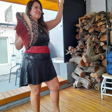 En general propone un show de unos 45 minutos con personajes hilados como la imitación de Susana Gimenez, una docente que interactúa con los presentes como sus alumnos, la parodia de la sexóloga Alessandra o de Jimena la astróloga tarotista, Graciela Borges u otros. En baby shower o reunion de mamás puede estar tambien mamá dulce con sus tips. y siempre los shows tienen un final tan divertido como emotivo.