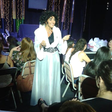 Ale Fidalme realiza eventos corporativos, sociales de todo tipo y también conducciones imitando a Susana Gimenez con humor o eventos motivacionales en empresas pensado el guion o la propuesta específicamente para la necesidad del cliente.